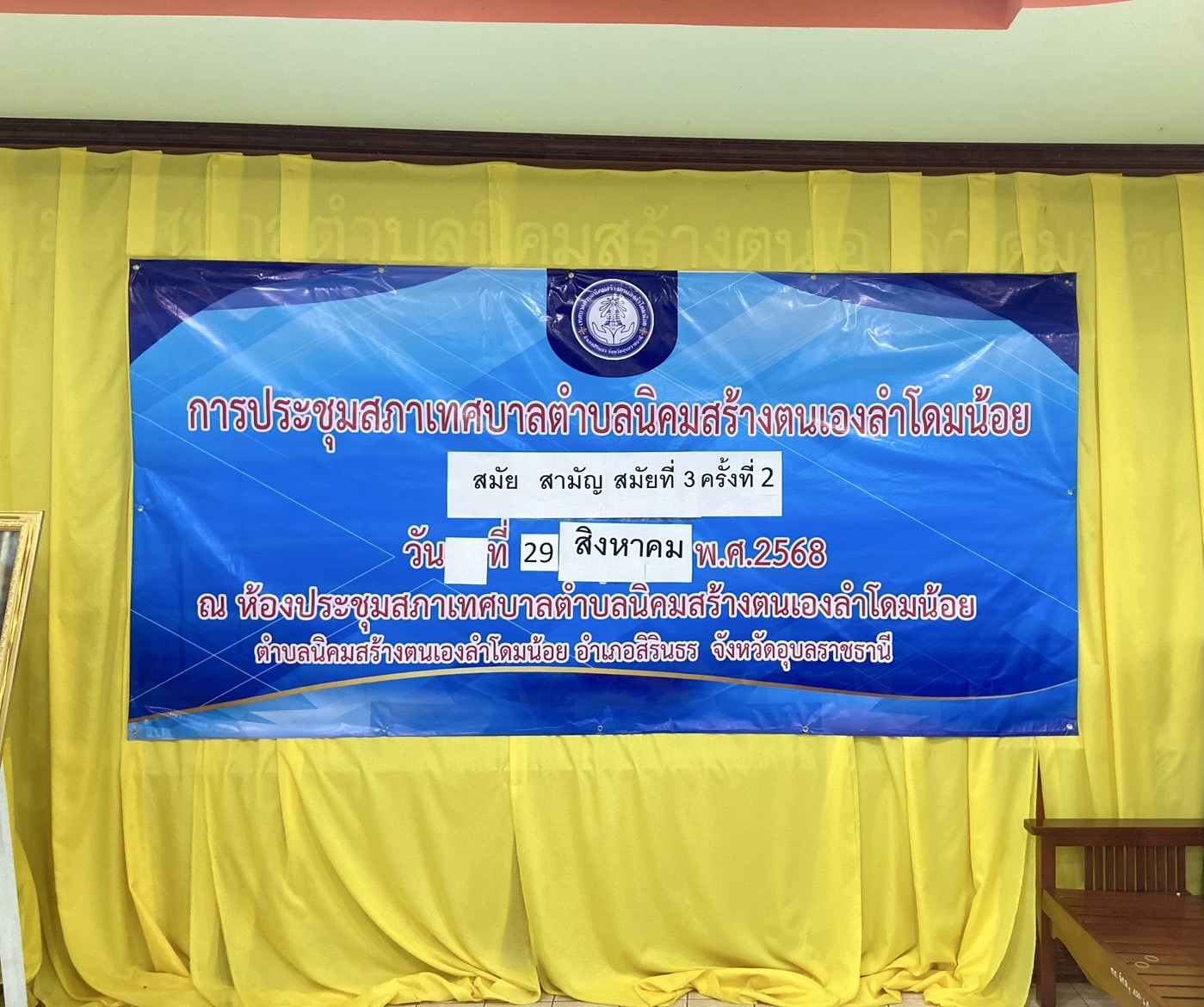วันศุกร์, 29 สิงหาคม 2568 10:02(29 สิงหาคม 2568) การประชุมสภาเทศบาลตำบลนิคมสร้างตนเองลำโดมน้อย สมัยสามัญ สมัยที่ 3 ครั้งที่ 2 ณ ห้องประชุมสภาเทศบาลตำบลนิคมสร้างตนเองลำโดมน้อย อำเภอสิรินธร จังหวัดอุบลราชธานี