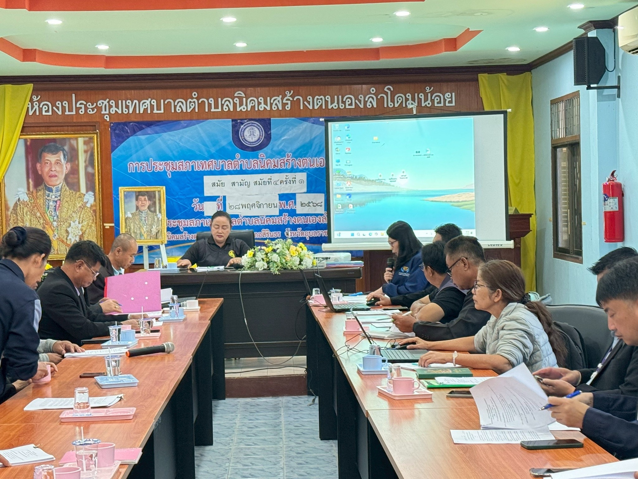 วันพุธ, 14 มกราคม 2569 15:06(13 มกราคม 2569) นางรจนา แสนอ้วน นายกเทศมนตรีตำบลนิคมสร้างตนเองลำโดมน้อย หัวหน้าส่วนราชการ เจ้าหน้าที่งานสาธารณสุข และคณะกรรมการกองทุนหลักประกันสุขภาพ ร่วมประชุมสรุปโครงการ กองทุนหลักประกันสุขภาพเทศบาลตำบลนิคมสร้างตนเองลำโดมน้อย หมวดที่ 1 ปีงบประมาณ 2568 ณ ห้องประชุมสภาเทศบาลตำบลนิคมสร้างตนเองลำโดมน้อย อำเภอสิรินธร จังหวัดอุบลราชธานี